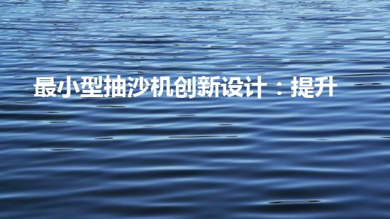 最小型抽沙機創新設計:提升效率的抽沙設備如何改變產業格局?